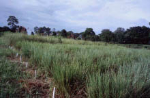 ที่เตรียมดินและ ยกร่องไว้แล้วปลูกในขณะที่ดินยังมีความชุ่มชื้นอยู่ ขนาดแปลงกว้าง