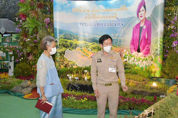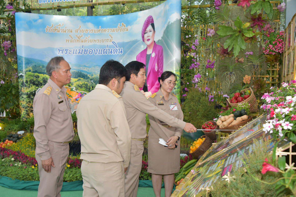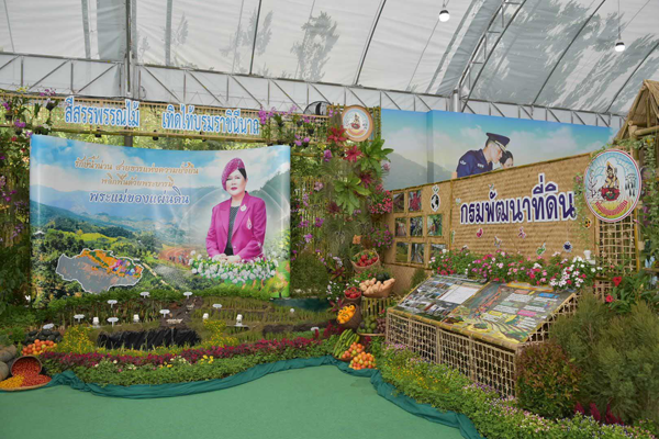 ทั้งนี้ กรมพัฒนาที่ดิน โดยสถานีพัฒนาที่ดินจังหวัดน่าน ได้ร่วมจัดนิทรรศการ หัวข้อ “รักษ์น้ำน่าน สายธารแห่งความยั่งยืน พลิกฟื้นด้วยพระบารมี พระแม่ของแผ่นดิน” เพื่อนำเสนอโครงการรักษ์น้ำเพื่อพระแม่ของแผ่นดินลุ่มน้ำขุนน่าน การอนุรักษ์ป่าต้นน้ำ แหล่งต้นกำเนิดน้ำน่าน พร้อมทั้งจัดแสดงข้อมูลการอนุรักษ์ดินและน้ำแปลงเกษตรกรในพื้นที่โครงการฯ โดยการบริหารจัดการดินและน้ำในพื้นที่เกษตรบนพื้นที่สูงอย่างยั่งยืน รูปแบบการใช้ประโยชน์ที่ดินที่เป็นต้นแบบการพัฒนาควบคู่กับการอนุรักษ์ ช่วยสร้างรายได้จากการผลิตพืชมูลค่าสูง นิทรรศการมีชีวิตต้นแบบการทำการเกษตรในพื้นที่ที่มีการใช้ระบบอนุรักษ์ดินและน้ำ และการใช้ที่ดินให้เกิดประสิทธิภาพและยั่งยืนสามารถดำรงชีวิตอยู่ร่วมกับป่าและช่วยดูแลรักษาป่าไม้ให้เป็นต้นน้ำลำธาร นอกจากนี้ ยังมีกิจกรรมสาธิต THE MIRACLE OF SOIL การ DIY ศิลปะจากดิน แจกผลิตภัณฑ์สารเร่ง พด. วันละ 300 ชุด และจัดจำหน่ายผลิตภัณฑ์ของเกษตรกรในพื้นที่โครงการรักษ์น้ำเพื่อพระแม่ของแผ่นดินลุ่มน้ำขุนน่าน เช่น กาแฟ ชา น้ำหม่อน น้ำเสาวรส เป็นต้น สำหรับงาน “สีสรรพรรณไม้ เทิดไท้บรมราชินีนาถ” ประจำปี 2567 จัดขึ้น ระหว่างวันที่ 9 – 14 สิงหาคม พ.ศ. 2567 ณ สวนสมเด็จพระนางเจ้าสิริกิติ์ฯ เขตจตุจักร กรุงเทพฯ