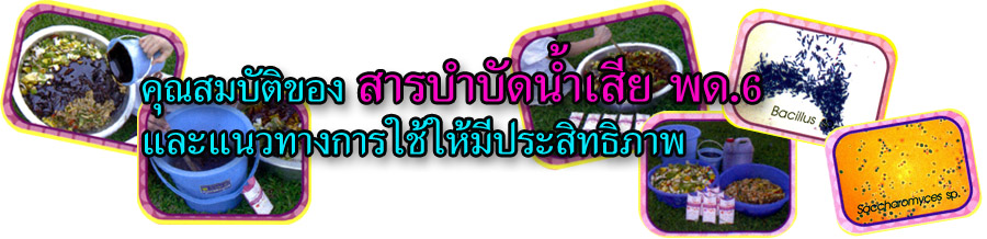สรุปรายงานผลการวิจัย เรื่อง การศึกษาประสิทธิภาพของผลิตภัณฑ์สารเร่ง พด.6 ในการบำบัดน้ำเสียประเภทต่างๆ สำนักเทคโนโลยีชีวภาพทางดิน กรมพัฒนาที่ดิน กระทรวงเกษตรและสหกรณ์