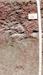 ดินล่างมีสีน้ำตาลปนเทาหรือสีเทา มีจุดประสีแดงตลอด