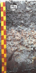 ดินล่างตอนล่าง เป็นดินเลนเหนียวสีเทาเข้ม ปฏิกิริยาดินเป็นกรดเล็กน้อย
