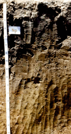 ดินล่างตอนล่าง และจะพบมวลก้อนกลมของเหล็กและแมงกานีสปะปนอยู่
