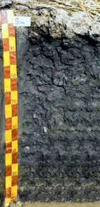ดินบนตอนล่างเป็นดินเหนียวสีเทาเข้มและสีเทา มีจุดประสีน้ำตาล