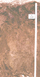 ปฏิกิริยาดินเป็นด่างปานกลาง (pH 8.0) มักพบก้อนปูนทุติยภูมิปะปนกับเศษหินผุในชั้นลึกๆ |