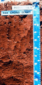 สีแดง อาจพบก้อนเหล็กและแมงกานีสสะสมใน ดินล่าง ปฏิกิริยาดินเป็นกรดปานกลางถึงเป็นกลาง