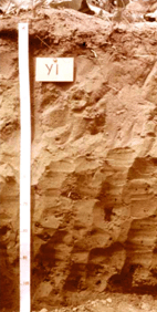 สีน้ำตาลปนแดงในดินล่างลึกลงไป พบจุดประสีน้ำตาลแก่ในชั้นดินนี้
