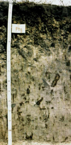 ดินร่วนปนทรายแป้งหรือดินเหนียวปนทรายแป้ง มีจุดประสีน้ำตาลแก่หรือสีเหลืองปนแดง