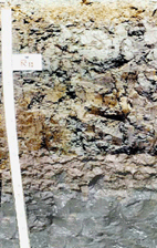 50-100 ซม. มีลักษณะเป็นดินเลนสีเทาปนน้ำเงินที่มีสารประกอบกำมะถัน