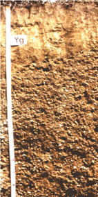 (ชั้นก้อนหินกรวดเหลี่ยมพบภายในความลึก 50 ซม.) มีสีน้ำตาล