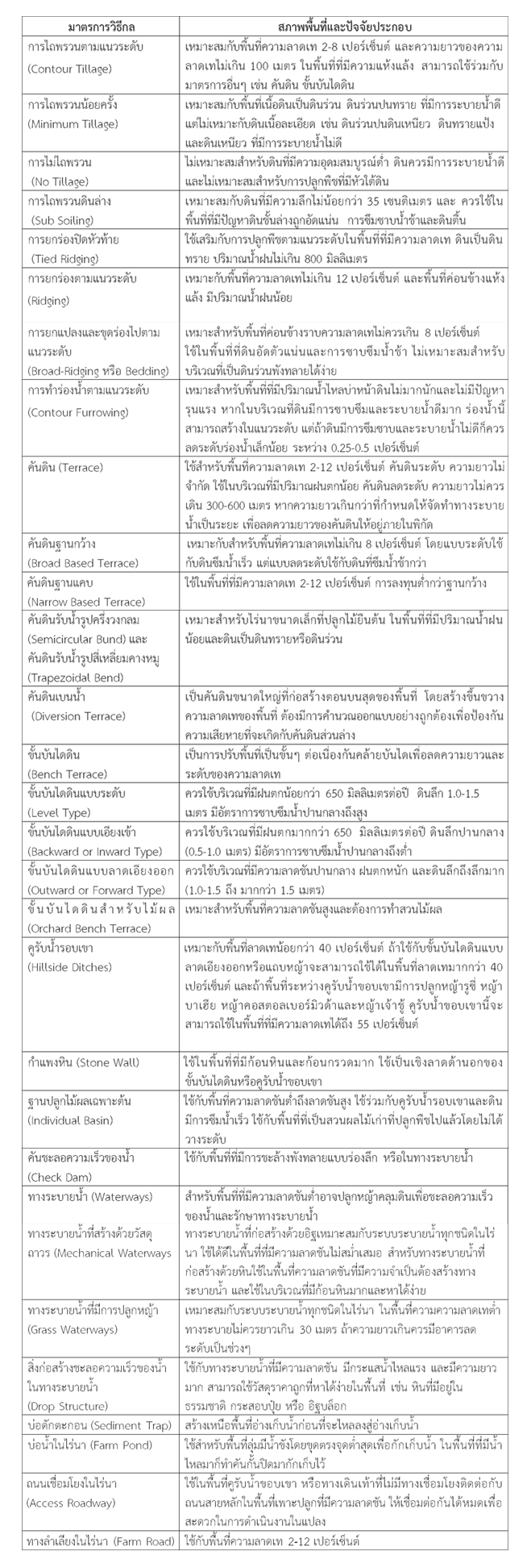 โดยการเลือกใช้ มาตรการอนุรักษ์ดินและน้ำ (soil and water Conservation
