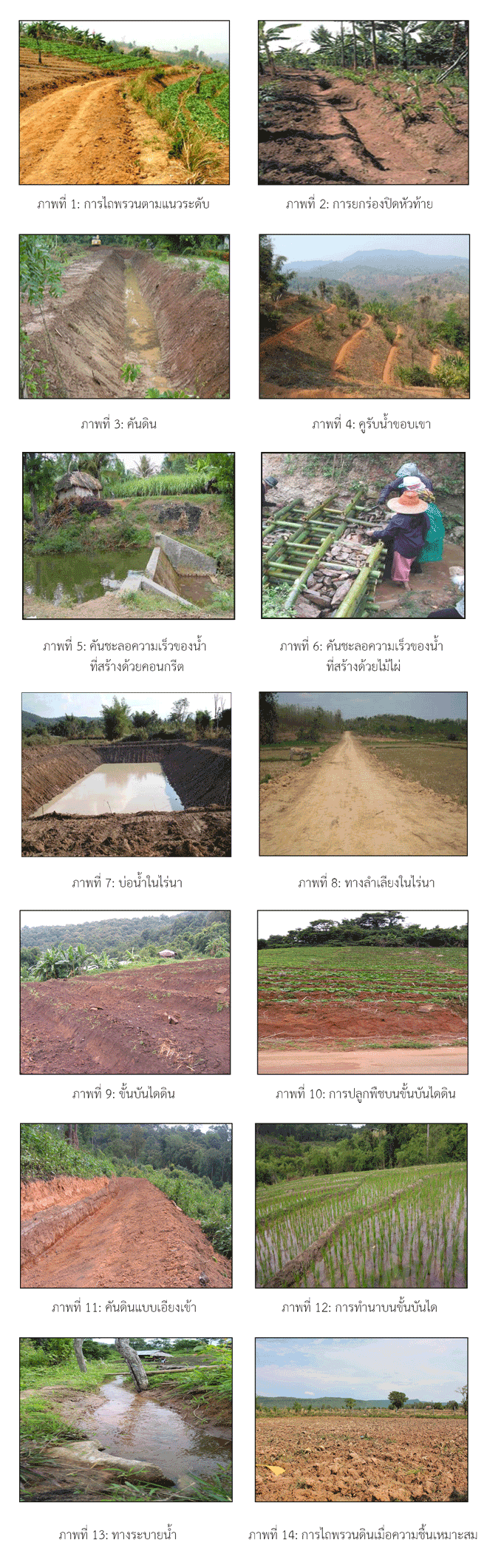 การยกร่องตามแนวระดับ การยกแปลงและขุดร่องไปตามแนวระดับ การทำร่องน้ำตามแนวระดับ
