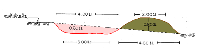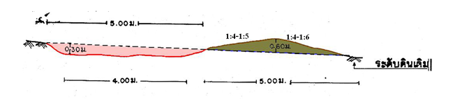 มีความลาดเทประมาณ 3-15 เปอร์เซ็นต์ ปริมาตรดิน ขุด-ถม ประมาณ