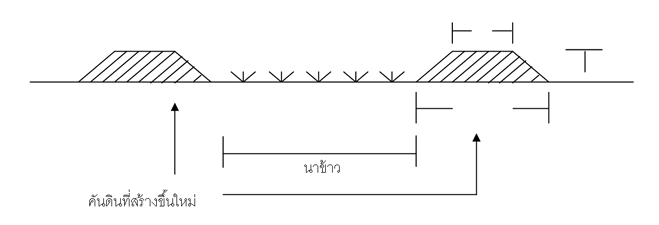 การปรับรูปแปลงนาลักษณะที่ 1 เป็นคันดินที่สร้างขึ้นโดยให้ระดับของคันดินอยู่ระดับเดียวกัน