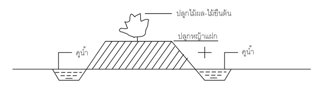 บนคันดินสามารถปลูกพืชเศรษฐกิจ เช่น ไม้ผล-ไม้ยืนต้นแบบแถวเดียว