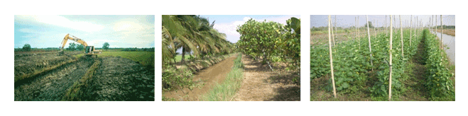 เพื่อกักเก็บน้ำ ระบายน้ำและส่งน้ำ จะเน้นให้มีการปลูกข้าวร่วมกับไม้ผลชนิดอื่นๆ