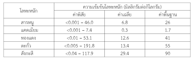(As) เท่ากับ 26 มิลลิกรัมต่อกิโลกรัม แคดเมียม (Cd) เท่ากับ